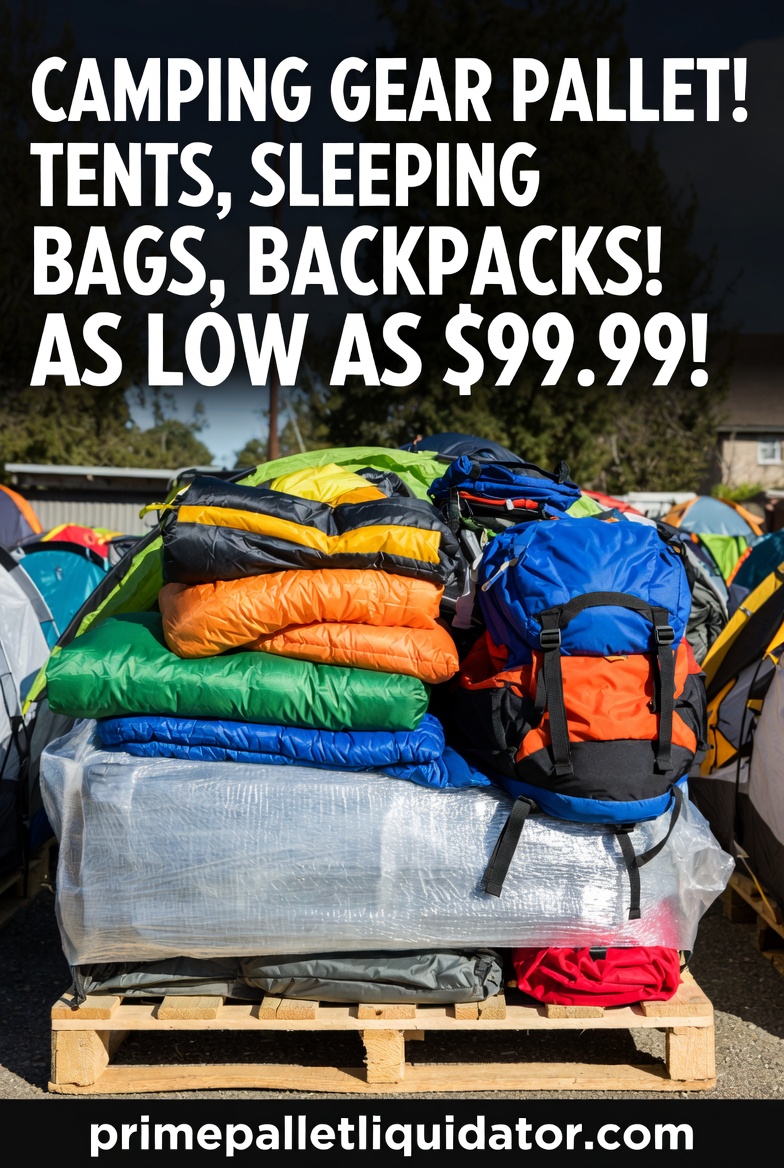 **Camping Gear Pallet for Sale** – Camping gear pallet for sale, wholesale camping gear pallet, camping supplies liquidation pallet, bulk outdoor gear overstock tent sleeping bag pallet, Coleman Yeti camping lot, outdoor adventure equipment wholesale.